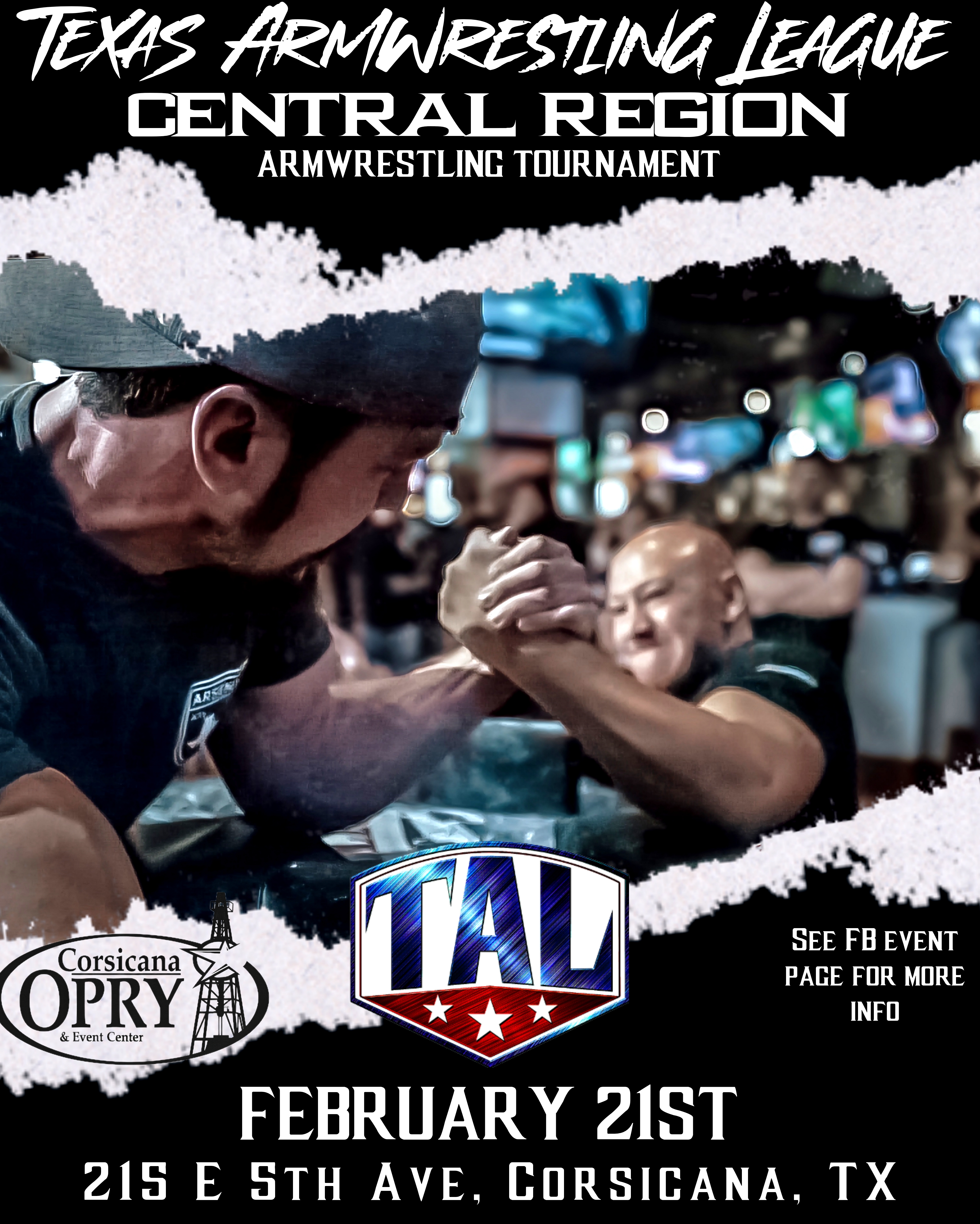 →Read MoreTexas Armwrestling League is hosting our first event of the 2026 season at the Corsicana Opry and Event Center. We are seeking sponsors to help with administrative costs for staff and awards in exchange for advertising to our Armwrestling community and bringing in crowds from outside the local areas. If you are interested to hearing what sponsorship packages we have to offer please send me an email.