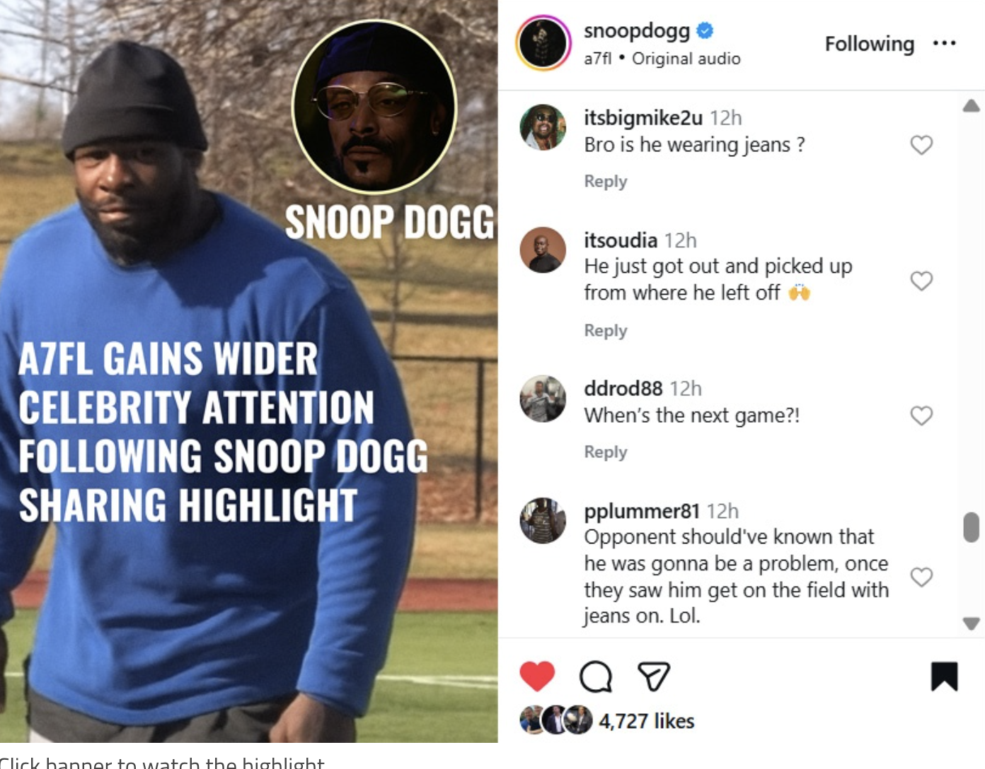 →Read MoreDecember 15, 2025 — Boca Raton, FL — The American 7s Football League (A7FL®) continues its rapid rise as one of the most talked-about properties in sports and entertainment culture, gaining high-profile visibility across major celebrity platforms. Today, legendary rapper, entertainer and cultural icon Snoop Dogg once again threw his weight behind A7FL sharing the league’s latest viral highlight featuring “the Garbage Man” laying down a massive hit that has captured fan attention across social platforms.