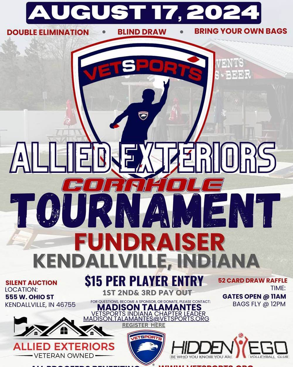 🔴⚪🔵Welcome To The 2nd Annual VETSports’ Allied Exterior Cornhole Fundraiser Tournament In Kendallville, Indiana!🔴⚪🔵
