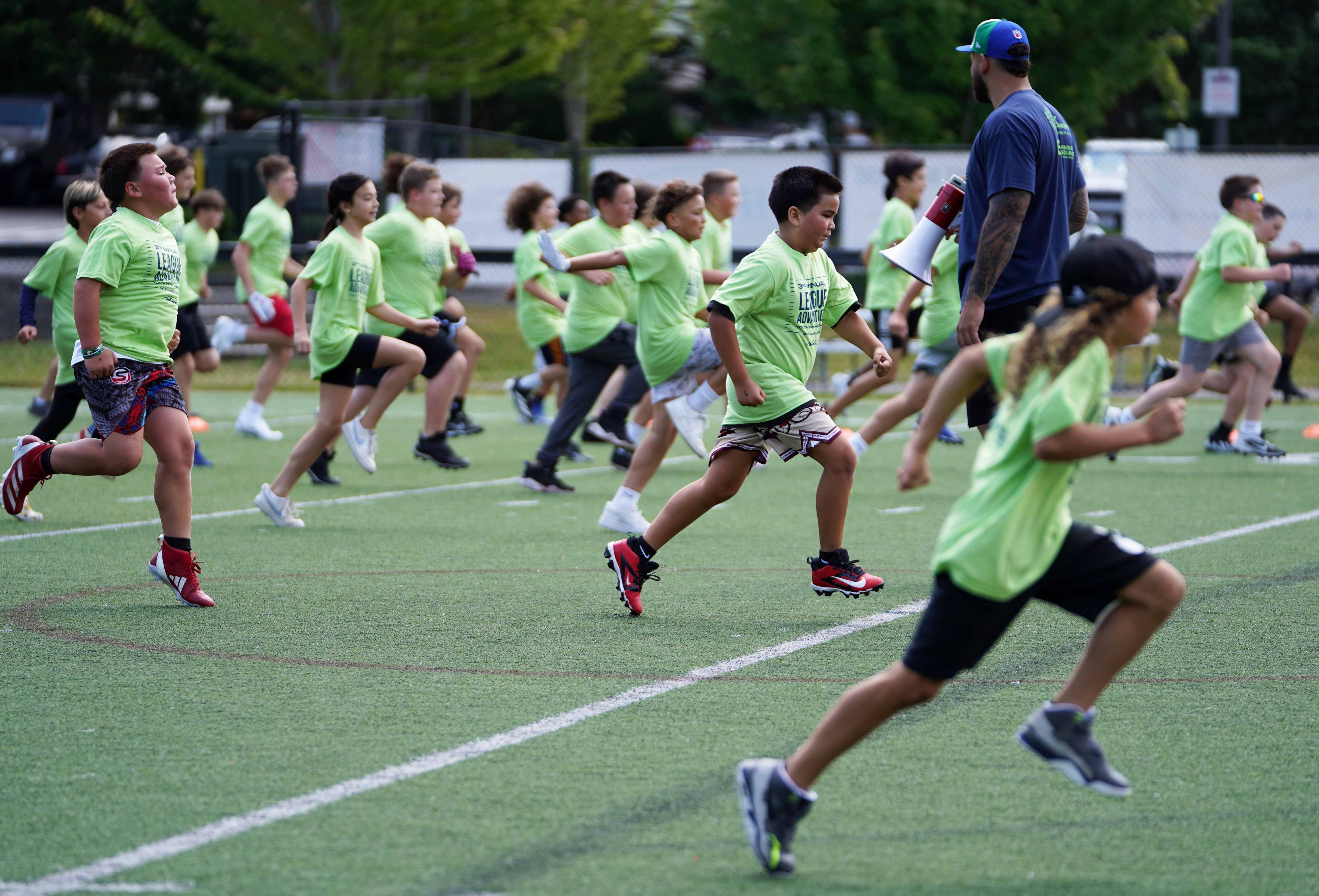 →Read MoreOn Saturday, June 28, the Snohomish County Sports Commission attended the 3rd Annual League Advantage Youth Football Camp at Archbishop Murphy High School, the alma mater of Seattle Seahawks offensive lineman Abraham Lucas. The camp was open to kids in grades 3-8, and they ran drills, played mini games and learned the fundamentals of football techniques.